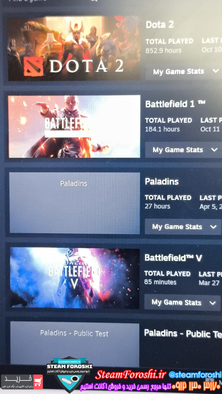 بازي هاي موجود در اکانت : Dota 2 , battlefield V, battlefield 1