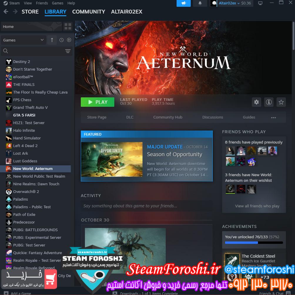 توضيحات : اکانت قیمتش تو db‌استیم ۱۱۶ دلار کمترینه بازی های در امد زا مثل new world که فول گیره rainbow بلک ایس کلی چیز میز داره گیم ها