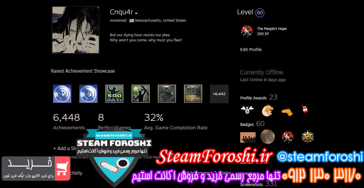 بازي هاي موجود در اکانت : Hunt: Showdown 1896, Aimlabs, Barro F, Hexen: Deathkings of the Dark Citadel, Tom Clancy’s Ghost Recon® Breakpoint, Grand Theft Auto V Enhanced, Red Dead Redemption 2, Grand Theft Auto V Legacy, Black Desert, Brawlhalla, NARAKA: BLADEPOINT, Destiny 2, THE FINALS, theHunter: Call of the Wild™, Tell Me Why, Apex Legends™, Cyberpunk 2077, Borderlands: The Pre-Sequel, Don’t Starve Together, Stormgate, Far Cry® 6, Call of Duty®, 7 Days to Die, Among Us, STALCRAFT: X, Borderlands 2, INSIDE, Marvel Rivals, Fishing Planet, Brotato, Soccer Online: Ball 3D, Forza Horizon 4, War Thunder, STAR WARS™: The Old Republic™, Ghost of Tsushima DIRECTOR’S CUT, Dota 2, 死寂(Deathly Stillness), Portal, Half-Life, DOOM Eternal, Basingstoke, FUCK HITLER, Stardew Valley, Sid Meier’s Civilization® VI, Battlefield™ 2042, Battlefield™ 1, Battlefield™ V, Dead Space™ 3, Titanfall® 2, Unravel Two, The Sims™ 4, STAR WARS Jedi: Fallen Order™, Blood Feed, The First Mountain, Perspective, Deadlock, Resident Evil Village Gold Edition Gameplay Demo, Buckshot Roulette, PICO PARK, Far Cry 3, Counter-Strike 2, Tomb Raider, Unturned, Tangles – تشابك, Flobe, Lost Ark, The Last of Us™ Part I, Fears to Fathom – Home Alone, Control Ultimate Edition, Hue, Resident Evil Revelations 2, Space Crew: Legendary Edition, Arena: Blood on the Sand VR, Middle-earth™: Shadow of War™, The Lab, Cities: Skylines, Terraria, Path of Exile, Achievements printer, Hellblade: Senua’s Sacrifice VR Edition, Golgotha, Tom Clancy’s Ghost Recon® Wildlands, HeXen II, METAL GEAR SOLID V: THE PHANTOM PAIN, Zero Hour, Half-Life 2, Dying Light, The Witcher: Enhanced Edition Director’s Cut, Goose Goose Duck, Riders Republic, Through Abandoned: The Refuge, Shatterline, DOOM, Watch Dogs®: Legion, Little Nightmares, 100 hidden cats, DDR: The Beginning, Far Cry® 5, Resident Evil Village, Team Fortress Classic, RUSSIAPHOBIA, Fluffy Creatures VS The World, Zup! S, Autumn, Tom Clancy’s Rainbow Six Siege – Test Server, Portal 2, Left 4 Dead 2, Left 4 Dead, Team Fortress 2, Half-Life Deathmatch: Source, Half-Life 2: Deathmatch, Day of Defeat: Source, Half-Life: Source, Counter-Strike: Source, Half-Life: Blue Shift, Counter-Strike: Condition Zero Deleted Scenes, Counter-Strike: Condition Zero, Ricochet, Half-Life: Opposing Force, Deathmatch Classic, Day of Defeat, Counter-Strike, Heretic: Shadow of the Serpent Riders, Hexen: Beyond Heretic, Max Payne 2: The Fall of Max Payne, The Witcher 2: Assassins of Kings Enhanced Edition, Dead Space (2008), Batman: Arkham Asylum Game of the Year Edition, Metro: Last Light Complete Edition, Spec Ops: The Line, LIMBO, Dead Space™ 2, Alan Wake, Dishonored, Call of Juarez: Gunslinger, Batman: Arkham City – Game of the Year Edition, Batman™: Arkham Knight, The Walking Dead, PAYDAY 2, Brutal Legend, METAL GEAR RISING: REVENGEANCE, Getting Over It with Bennett Foddy, Outlast, Assetto Corsa, The Forest, Dungeon of the ENDLESS™, Goat Simulator, The Witcher 3: Wild Hunt, Sniper Elite 4, Phoenix Force, ABZU, Fallout 4, Outlast 2, Hellblade: Senua’s Sacrifice, Resident Evil 7 Biohazard, Deceit, Resident Evil 7 Teaser: Beginning Hour, Battlestar Galactica Deadlock, WAVESHAPER, The Evil Within 2, Portal: Revolution, Tales of the Tiny Planet, Field of Glory II, A Plague Tale: Innocence, Bean Battles, Simple Story – Alex, Pool 2D – Poolians, Dota Underlords, Horizon Zero Dawn™ Complete Edition, Resident Evil 2 “R.P.D. Demo”, Hentai Police, Walking Simulator, Resident Evil Re:Verse, It Takes Two, Park The Car, Smart Thief, It Takes Two Friend’s Pass, 怕不怕趴喵霸霸 Ghost Party Nyanbaba, Soer Dolls, Alone in the Dark Prologue, PROJECT: PLAYTIME, DR LIVESEY ROM AND DEATH EDITION, TELEFORUM, Missing Hiker, Square n Fair, Castle of no Escape 2, PICO PARK:Classic Edition, Captivity, METAL GEAR SOLID V: GROUND ZEROES, Minimalism, Attempt[42], Through Abandoned: The Underground City, Escape This, SAMOLIOTIK, Tomb Joe, Planet R-12, Machine Learning: Episode I, Clickdraw Clicker, BM Studio.