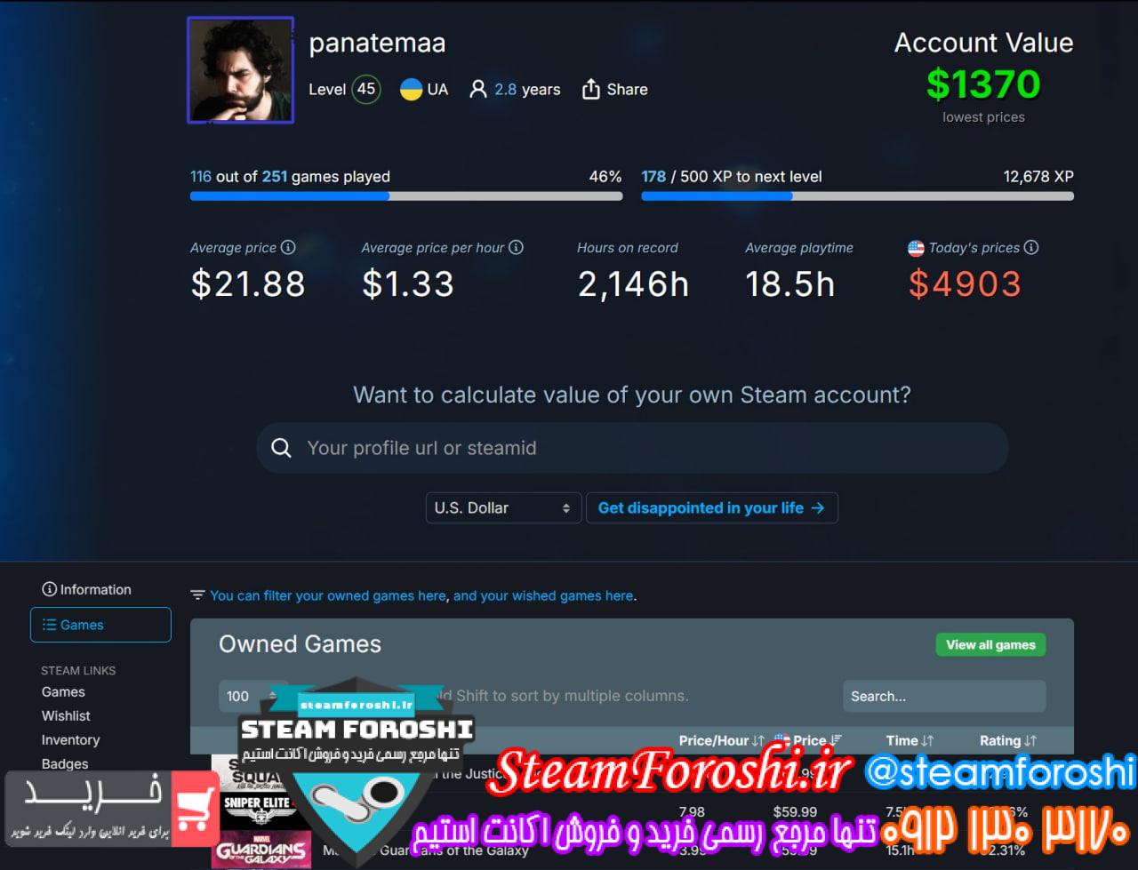 بازي هاي موجود در اکانت : Slay the Spire, Red Dead Redemption 2, Assassin’s Creed Valhalla, Black Myth: Wukong, Assassin’s Creed full Franchise, Satisfactory, Middle-earth™: Shadow of War™, Baldur’s Gate 3, HELLDIVERS™ 2, The Witcher 3: Wild Hunt, Horizon Zero Dawn™ Complete Edition, Control Ultimate Edition, Marvel’s Guardians of the Galaxy, A Plague Tale: Requiem, Cyberpunk 2077 FULL DLC, Assassin’s Creed Unity, Batman™: Arkham Knight, Warhammer 40,000: Dawn of War III, STAR WARS Jedi: Fallen Order™, Dead Space Remake, Warhammer 40,000: Dawn of War II Anniversary Edition, Age of Mythology: Extended Edition, The Forest, SOMA, Labyrinthine, Forza Horizon 4, Dying Light, Darksiders Warmastered Edition, Hades, Resident Evil 2, Sniper Elite 4, Resident Evil 6, Dead Space (2008), Little Nightmares II, Wallpaper Engine, Rise of the Tomb Raider, Alan Wake, Battlefield™ 2042, Guns, Gore and Cannoli 2, Crab Champions, Tomb Raider, Marvel’s Avengers – The Definitive Edition, Hades II, Shadow of the Tomb Raider, ATOMINE, Battlefield 1 ™, Titanfall® 2, Warhammer 40,000: Dawn of War – Anniversary Edition, Resident Evil 4 (2005), Machinarium, Batman: Arkham Asylum GOTY Edition, Prince of Persia: Warrior Within, Injustice™ 2, Resident Evil 3, GRIS, Ghostrunner, Grim Dawn, LIMBO, Batman: Arkham City GOTY, Halo: The Master Chief Collection, Ryse: Son of Rome, Detroit:Become Human, Quantum Break, BioShock Full Collection What Remains of Edith Finch, Don’t Starve Together, Crysis Collection, Warhammer 40,000: Dawn of War II – Retribution, Resident Evil 4, Neva, People Playground, Mad Max, Mass Effect™ Legendary Edition, Arise: A Simple Story, Middle-earth™: Shadow of Mordor™ Resident Evil 7 Biohazard, STAR WARS Jedi: Survivor™, ABZÛ, Shadow Tactics: Blades of the Shogun, Beyond: Two, Souls, PlateUp!, INSIDE, Mafia Full Collection, Strange Brigade, Phasmophobia, World War Z, Outlast 2, The First Tree, Botanicula, Deus Ex: Human Revolution – Director’s Cut, Castlevania: Lords of Shadow 2, Dragon Age: Origins – Ultimate Edition, Dishonored Full Collection, Darkwood, FAR: Lone Sails, Pathologic 2, Hunt: Showdown 1896, Disco Elysium, Darksiders II Deathinitive Edition, Little Nightmares, Bully: Scholarship Edition, Max Payne 3, The Stanley Parable: Ultra Deluxe, Samorost 1, The Quarry, PICO PARK, Gotham Knights Metro Full Collection, It Takes Two, Need for Speed™ Hot Pursuit Remastered, Days Gone, Dead Space™ 3, Dragon Age II, Dragon Age™ Inquisition, Tell Me Why, Ready or Not, Mortal Shell, Before Your Eyes, Lust from Beyond, SUCCUBUS, Mortal Kombat 11, Age of Empires III: Definitive Edition, Valheim, DOOM Eternal, A Plague Tale: Innocence, Hellblade: Senua’s Sacrifice VR Edition, Sniper Elite V2 Remastered, Stick Fight: The Game, Raft, The Crew 2, Psychonauts 2, Black Desert, Deep Rock Galactic, theHunter: Call of the Wild™, ACE COMBAT™7: SKIES UNKNOWN, Planet Coaster, The Elder Scrolls V: Skyrim Special Edition, Prey, Human Fall Flat, Samorost 3, Hellblade: Senua’s Sacrifice, BioShock 2 Remastered, ARK: Survival Of The Fittest, Wuppo – Definitive Edition, Dead Island Riptide Definitive Edition, DOOM, ARK: Survival Evolved, Hatred, Deus Ex: Mankind Divided™, Frostpunk, Life is Strange™, Sleeping Dogs: Definitive Edition, ENDLESS™ Legend, Sid Meier’s Civilization VI, Grand Theft Auto V, The Evil Within, The Talos Principle, 7 Days to Die, Watch_Dogs 1, Outlast, Sniper Elite 3, Killing Floor 2, Remember Me, Desktop Dungeons, Just Cause 3, PAYDAY 2, Alien: Isolation, Hitman: Sniper Challenge, Hitman: Absolution, The Darkness II, Amnesia: The Dark Descent, Darksiders, Borderlands 2, Dead Space 2, Stronghold Crusader HD, Killing Floor Mod: Defence Alliance 2, Prince of Persia full collection, Warhammer 40,000: Dawn of War II – Chaos Rising, Stronghold Crusader Extreme HD, Max Payne 2: The Fall of Max Payne, Warhammer 40,000: Dawn of War – Soulstorm, Warhammer 40,000: Dawn of War – Winter Assault, BioShock Infinite, Just Cause 2,, Hitman: Blood Money, Warhammer 40,000: Dawn of War – Dark Crusade, Killing Floor, Portal 1-2, Left 4 Dead 2, Half-Lifes