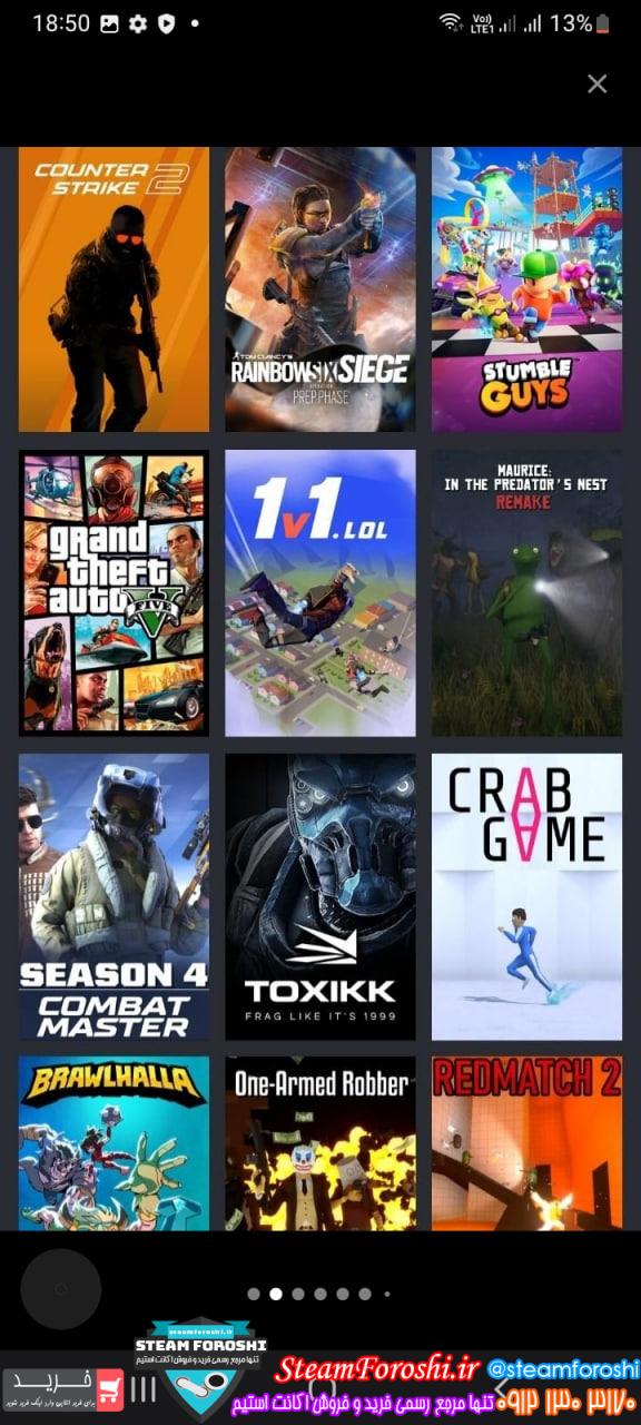بازي هاي موجود در اکانت : Grand Theft Auto V , Rainbow Six Seig , Love Letter , Assassin Creed Valhalla , Half Life 2 , Battle Field V