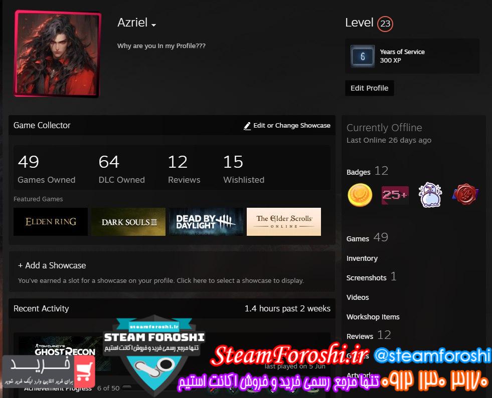 بازي هاي موجود در اکانت : بازی ها: Dark souls 1 Remastered Dark souls 2 Dark souls 3 with all DLCs Nioh 1 Elder Scrolls Online Dead By daylight Elden Ring Ghost recon Breakpoint + Seasson Pass Diablo 4 Lords of the fallen Path of Exile 2 V rising Remnant: From the Ashes Resident Evil 7 Resident Evil 4 Remake Resident Evil 6 Dayz Dead Space 3 Arma 3 Incursion Red River Darkest Dungeon SCP: 5K GROUND BRANCH Hollow Knight The Incredible Adventures of Van Helsing: Final Cut The Incredible Adventures of Van Helsing 1 The Incredible Adventures of Van Helsing 2 The Incredible Adventures of Van Helsing 3 Darkwood Black Desert Warhammer: Vermintide 2