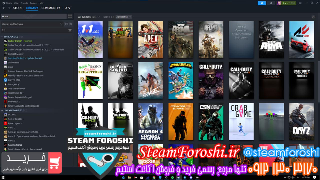 بازي هاي موجود در اکانت : Z1 Battle Royale, War Thunder, War Selection, VRChat, Unturned, TOXIKK, Totally Accurate Battlegrounds, Tiger Knight: Empire War, THE FINALS, Super Sus, Supermarket Together, Stumble Guys, RISK: Global Domination, Redmatch 2, Realm Royale – Test Server, Realm Royale Reforged, PUBG: BATTLEGROUNDS, POLYGON, PlanetSide 2 – Test, PlanetSide 2, Pixel Strike 3D, PAYDAY 2, Paladins – Public Test, Paladins, Operation: Harsh Doorstop, One-armed robber, One-armed cook, Landfall Archives, Just Survive Test Server, Just Survive, Insurgency, Heroes & Generals, H1Z1: Test Server, Garry’s Mod, Freddy Fazbear’s Pizzeria Simulator, FPS Chess, Evolve Stage 2, Escape Room – The Sick Colleague, eFootball™, DogeFight, DDNet, DayZ, Cube Racer, Crab Game, Counter-Strike Nexon, Counter-Strike 2, Combat Master, Call of Duty: Black Ops II – Zombies, Call of Duty: Black Ops II – Multiplayer, Call of Duty: Black Ops II, Call of Duty®: Modern Warfare® 3 (2011) – Multiplayer, Call of Duty®: Modern Warfare® 3 (2011), Call of Duty®, Brawlhalla, BLOODSTRIKE, Black Squad, Baldi’s Basics Classic Remastered, Arma 3, Arma 2: Operation Arrowhead, Arma 2, Apex Legends, Ace of Spades, 1v1.LOL