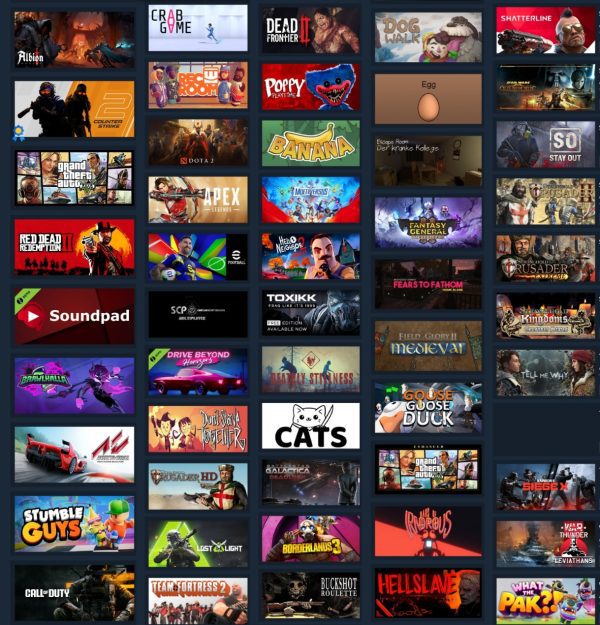 بازي هاي موجود در اکانت : GTAV , RDR2 ,Assetto corsa , borderlands3 , tell me why , pack Stronghold crusader , Starwars the old Republic , hellslaves , Haus of irndrous , buckshot roulette ، don’t strave together