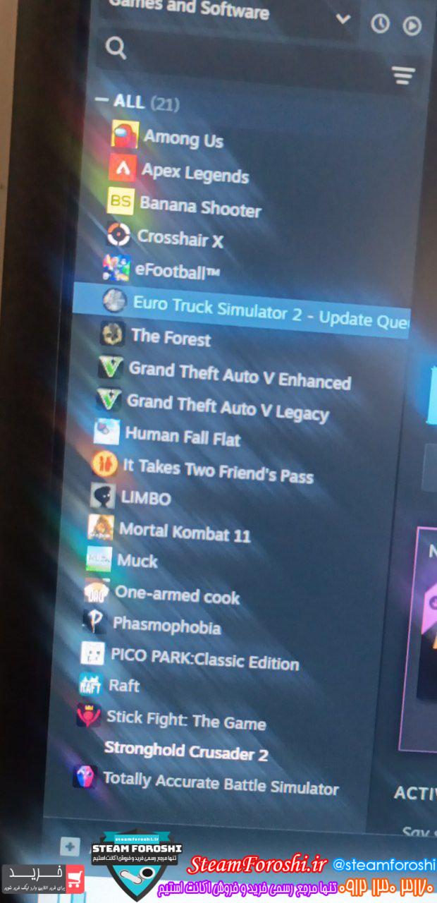 بازي هاي موجود در اکانت : Among Us Apex Legends Banana Shooter Crosshair X Efootball Euro Truck 2 The Forest Gta V Human Fall flat Limbo Mortal Kombat 11 Ultimate Muck One Armed Cook Phasmophobia Pico Park Claasic Edition Raft Stick Fight The Game Totally Accurate Battle Sim
