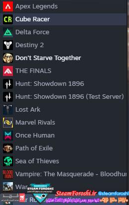 بازي هاي موجود در اکانت : the finals-sea of thieves-hunt-showdown-don’t starve together-apex legends-delta force-lost ark-path of exile-war robots: frontiers-Marvel Rivals-Marvel Rivals