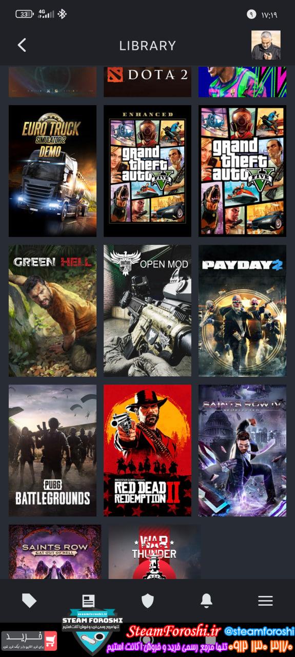 بازي هاي موجود در اکانت : Gta v,red dead redemption 2, Dota 2, payday 2,arma 3,green hell,