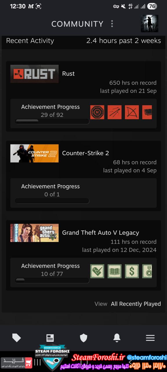 بازي هاي موجود در اکانت : اکانت اورجینال Gta v و اکانت اورجینال rust