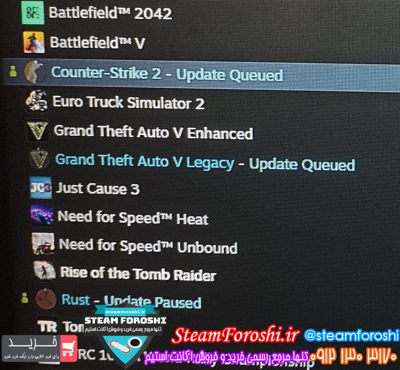 بازي هاي موجود در اکانت : Battlefield v – battlefield 2042 – eurotruck simulator 2 – gta v – just cause 3 – nfs heat – nfs unbound – rise of tomb raider – rust – wrc10fia wrold rally champions