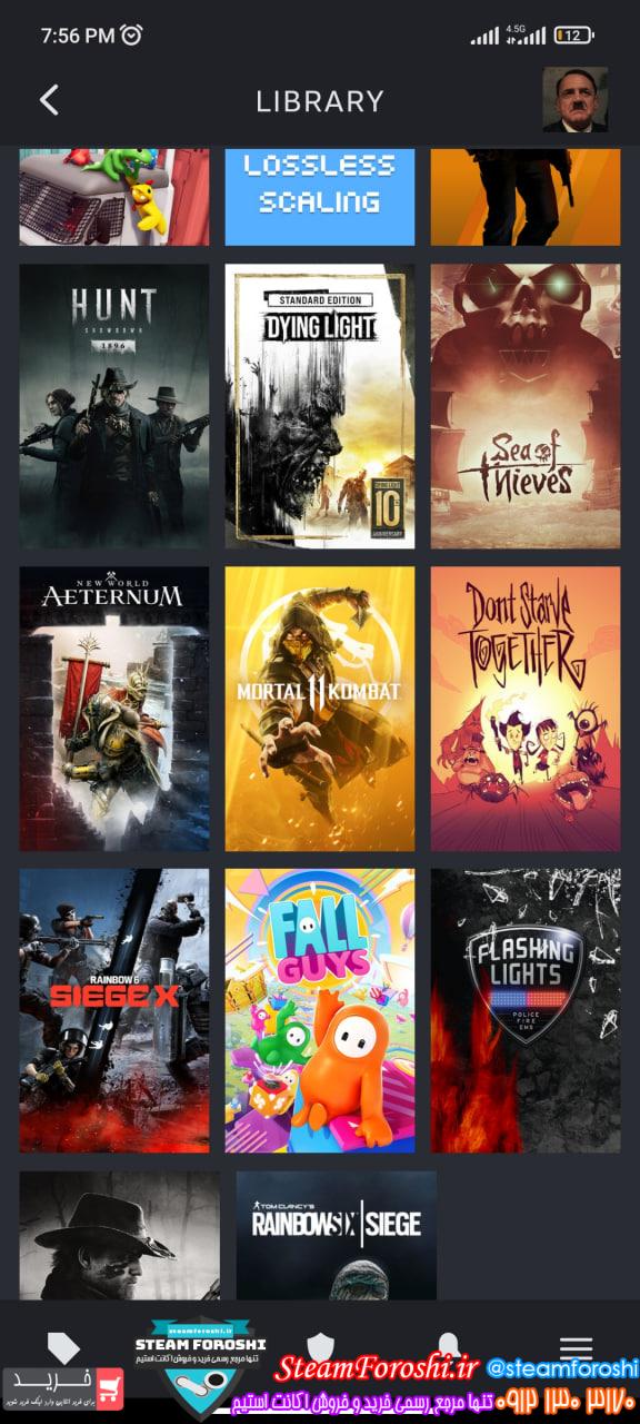 بازي هاي موجود در اکانت : Rainbow six – new world – gang beasts – dont starve together – mk11 – dying loght – sea of thieves – hunt showdown