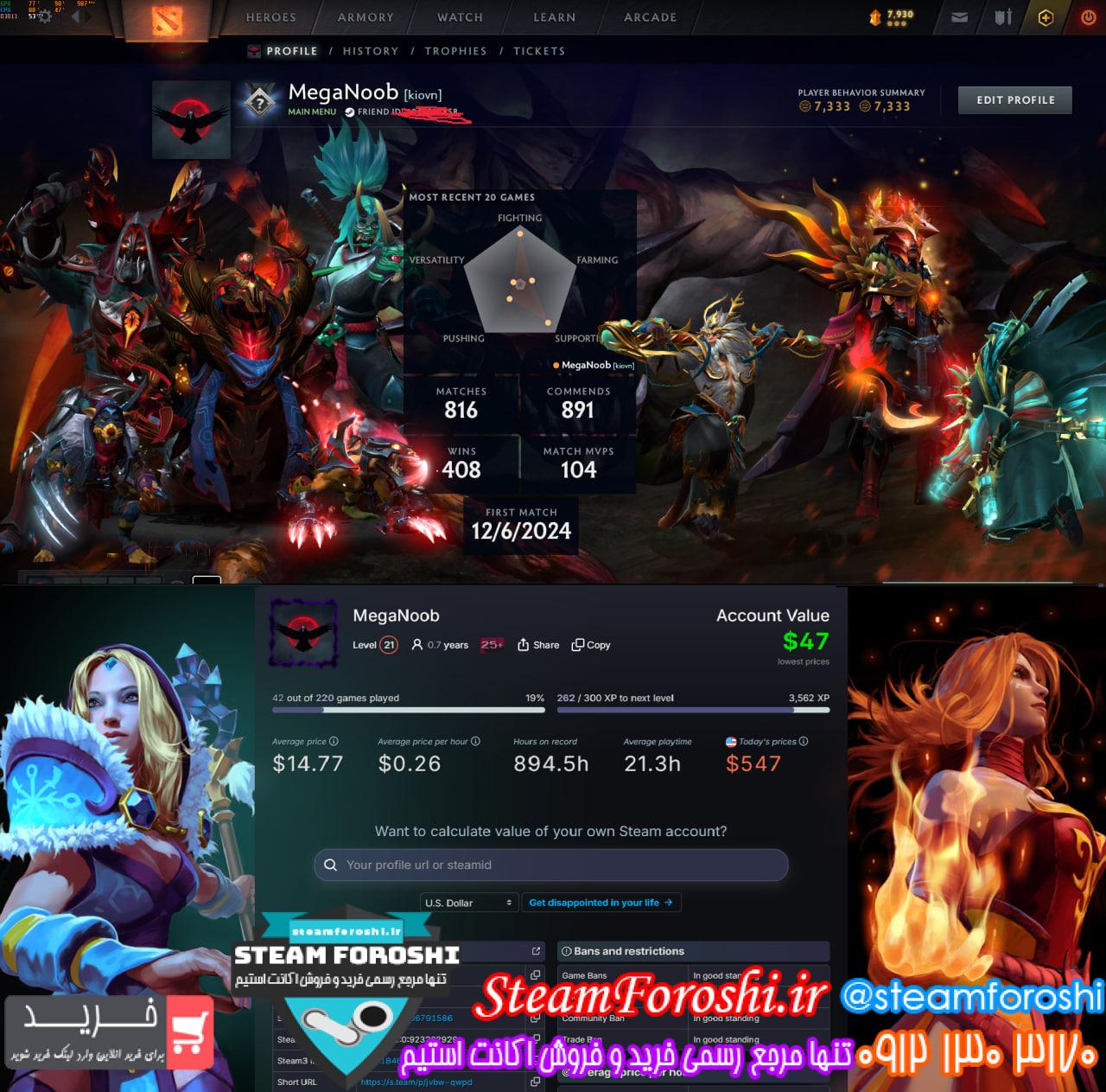 توضيحات : اکانت استیمم لول 21 هستش و کلی از بازی هام لول هاشون فول شده ؛ بازی دوتا2 لول 30 هست و کلی ایتم ها و ایمرتال های با ارزرش داره ارکانای لژیون رو دارم و چندین کالکتر کش باز کردم توش که ست های زیبایی هم داده ؛ به دلیل بدهی زیاد و قست های زیاد وام بانکی و نیاز مالی مجبور به فروش اکانت شدم . اکانت اصلی خودمه و خیل یبرام با ارزش بوده .