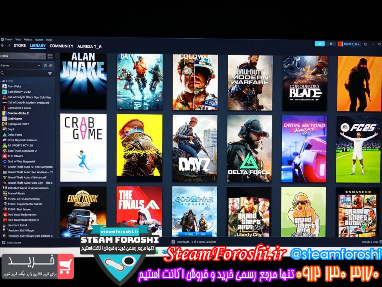 بازي هاي موجود در اکانت : سایبر پانک 2077 ردد 2 ردد 1 هیتمن کالاف مودرن وارفار و کولد وار RUST DAY Z و …..