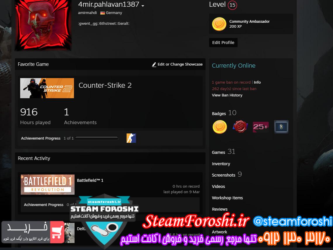 توضيحات : اکانت سالم فقط در cs2 بن شده اونم ایتماش هست و قابل فروشه