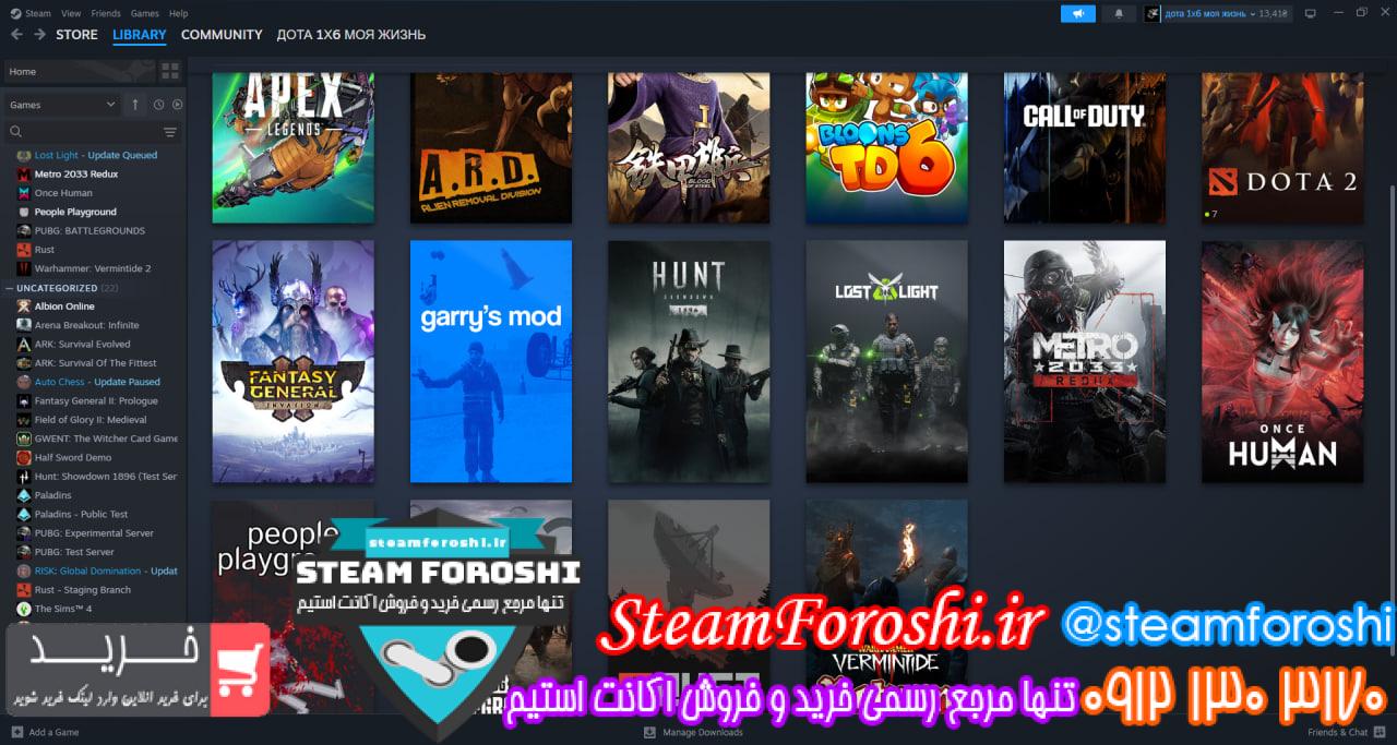 بازي هاي موجود در اکانت : metro 2033 redux – bloons TD 6 – ARK: survival evolved – Rust – Hunt: Show down – Garry’s Mod – Dota 2 – Warhammer: Vermintide 2 – People playground