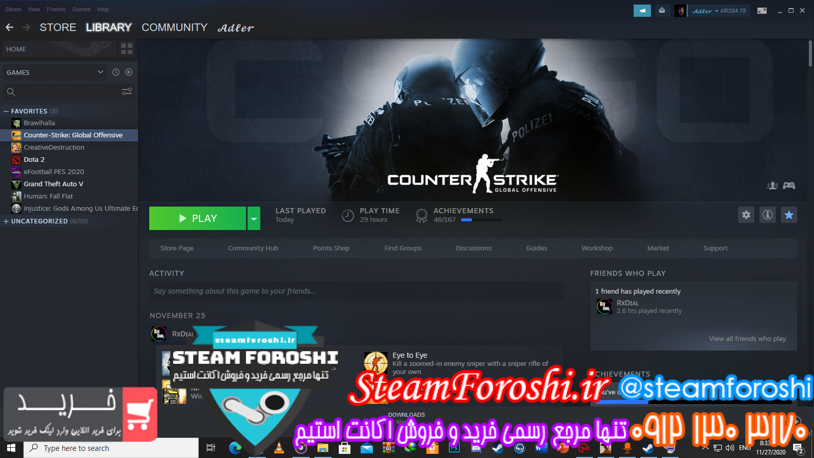 بازي هاي موجود در اکانت : GTA V _ PES2020 _I NJUSTIC _ HUMAN:FALL FLAT _ DOTA2 _ COUNTER