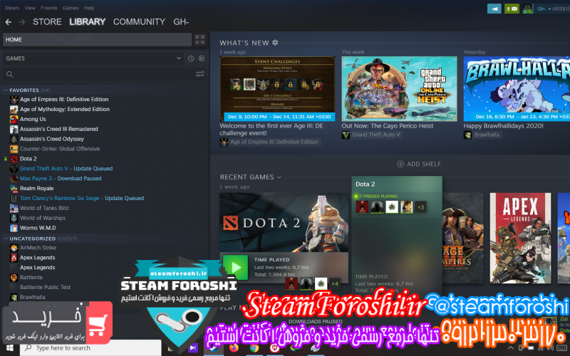 بازي هاي موجود در اکانت : dota2 rainbow among us ac odyccey age of empire ….