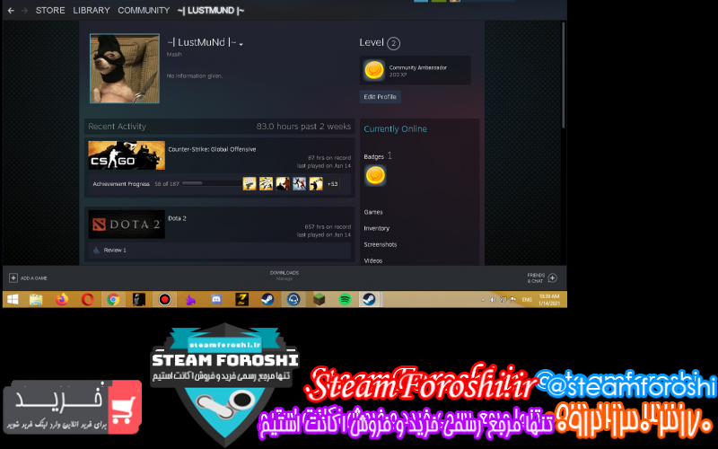 توضيحات : حدود ۷ دلار استیم ولت + ریجن امریکا ( دلار ) + رنک دوتا۲ هرالد۳ + رنک اکانت سی اس گو : سیلور الایت + اد فریند باز + مارکت باز