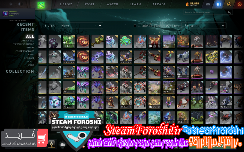 توضيحات : ۱۱۰۰ تا ایتم داره.به همراه ارکانا IO و ایمورتالای سبز lion , storm spirit , kunka و ۶ ست از ستای دوتا پلاس شامل ستای earth shaker.magnus.tusk.sniper.anti mage.monkey king و چند ست خاص و کمیاب که تو هیچ مارکت و سایتی پیدا نمیشه و مخصوص بتل پسای سالای قبل بوده.بتل پس ۲۰۱۶ لول ۳۱۰٫بتل پس ۲۰۱۷ لول ۵۸۳٫بتل پس ۲۰۱۸ لول ۶۲۴ و بتل پس ۲۰۱۹ لول ۲۶۴٫به مشتری تخفیفم میدم ولی اونی که پلیر دوتا باشه میدونه چه اکانت عروسیه این اکانت
