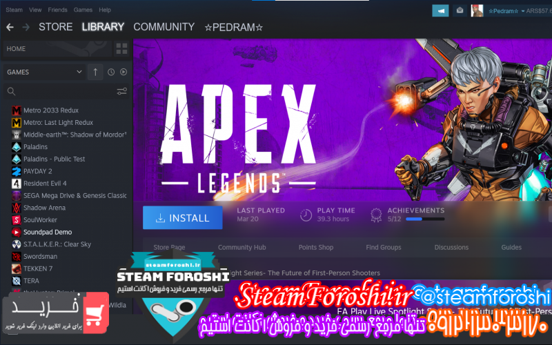 بازي هاي موجود در اکانت : Apex,Dota,Csgo,Arc,COH2,Homfront 2,Ghost recon wildlands,Tekken7,….