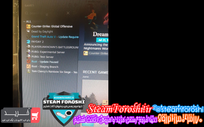 بازي هاي موجود در اکانت : counter rust gta pubg rust payday 2 rainbowsix