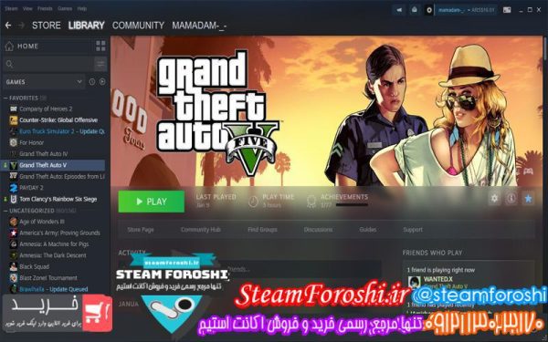 بازي هاي موجود در اکانت : gta v & rainbow six &payday &euro truck 2 & gta iv &for honor