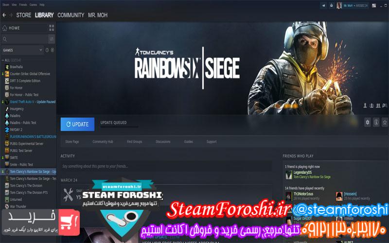 بازي هاي موجود در اکانت : Tom Clancy’s Rainbow Six Siege, PLAYERUNKNOWN’S BATTLEGROUNDS, Counter-Strike: Global Offensive, Grand Theft Auto V, Tom Clancy’s The Division, PAYDAY 2