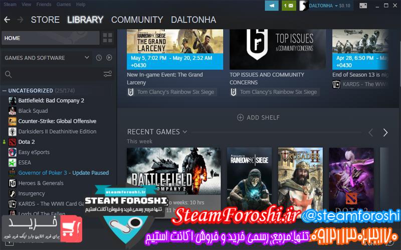 بازي هاي موجود در اکانت : Rainbow6 seig-dota2-stronghold 2.hd.extreme – lord of the fallen-darksiders2-insurgency