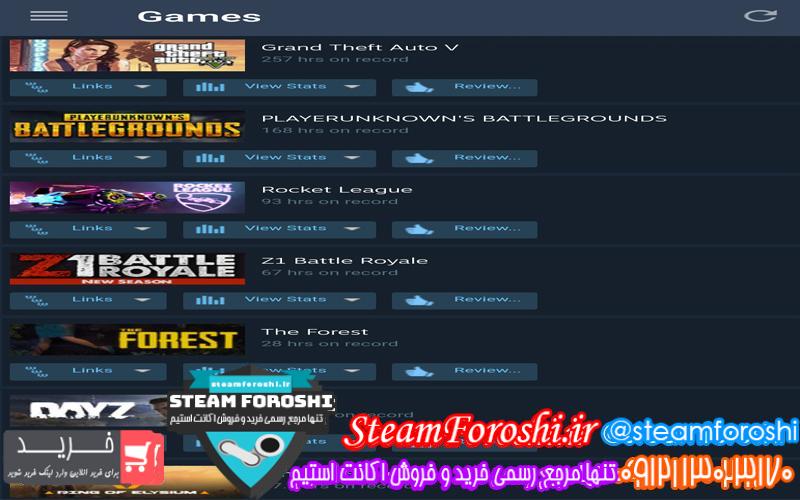 بازي هاي موجود در اکانت : PUBG/GtaV/DayZ/PayDay2/RocketLegue/..
