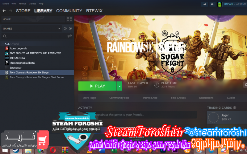 بازي هاي موجود در اکانت : RAINBOW6, FIVE NIGHT AT FREDDY’S5, APEX, PHASMOPHOBIA, MEGALONIA, SPACEWAR