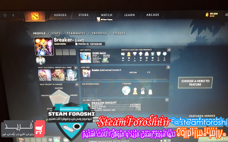 فروش اکانت دوتا ۲ کد ۱۱۲۲۳