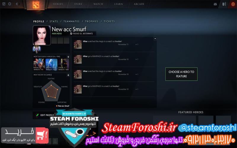 فروش اکانت دوتا ۲ کد ۱۶۹۷