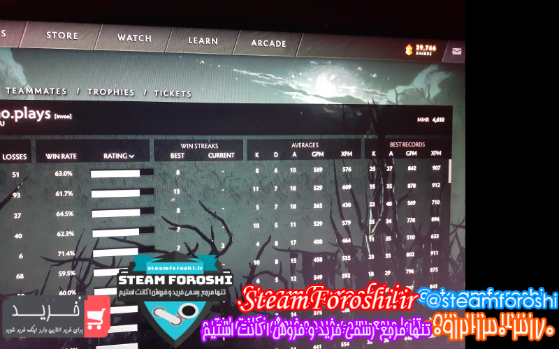 آيتم هاي بازي : items : battlepass 2016(lvl230) ,battlepass 2017(lvl 392) ,battlepass 2018 (lvl 321) ,battlepass2019(lvl 503) , battlepass 2020(+640) , 45 taunts of heroes . some immortall items . 11 collector cache items