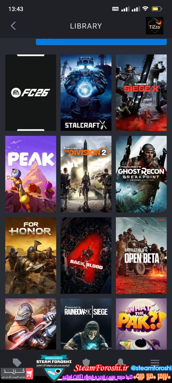 اسم اکانت : اکانت استیم شامل fc26,rainbowsix,forhonor,peak…